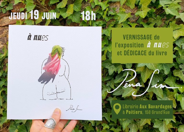 À Poitiers, l'exposition à nues prendra place à la librairie-café Aux bavardages tout l'été. On se voit pour le vernissage-rencontre-dédicace le 12 juin à 18h30.